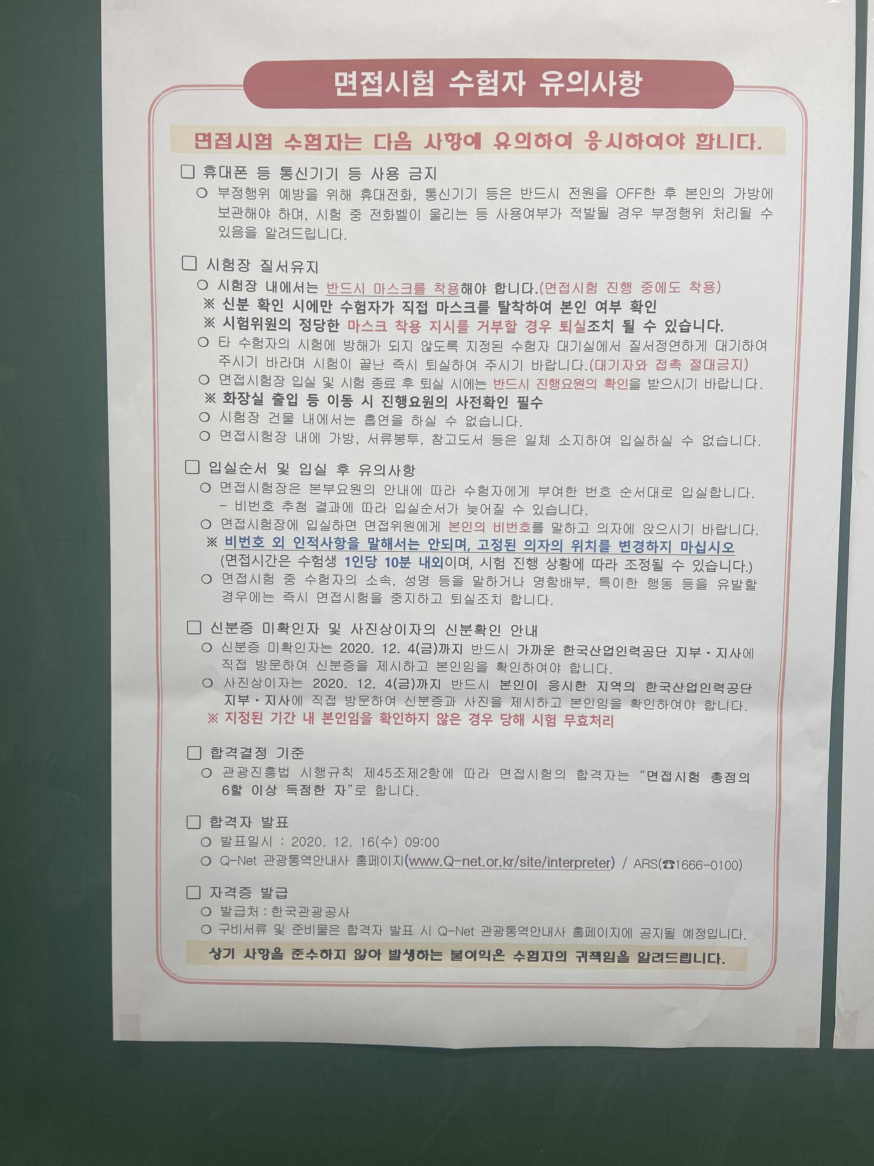 ( 당일에 80% 이상이 정장을 차려 입고 왔고, 일부만이 캐주얼 차림으로 왔습니다. 관광통역안내사는 관광지에서 한 기업, 문화, 국가를 대변하는 분야입니다. 관통사를 뽑는 면접에서 그 사람의 이미지를 보여줄 때 예복조차 갖춰있지 않다면, 면접관은 무슨 생각을 할까요?)